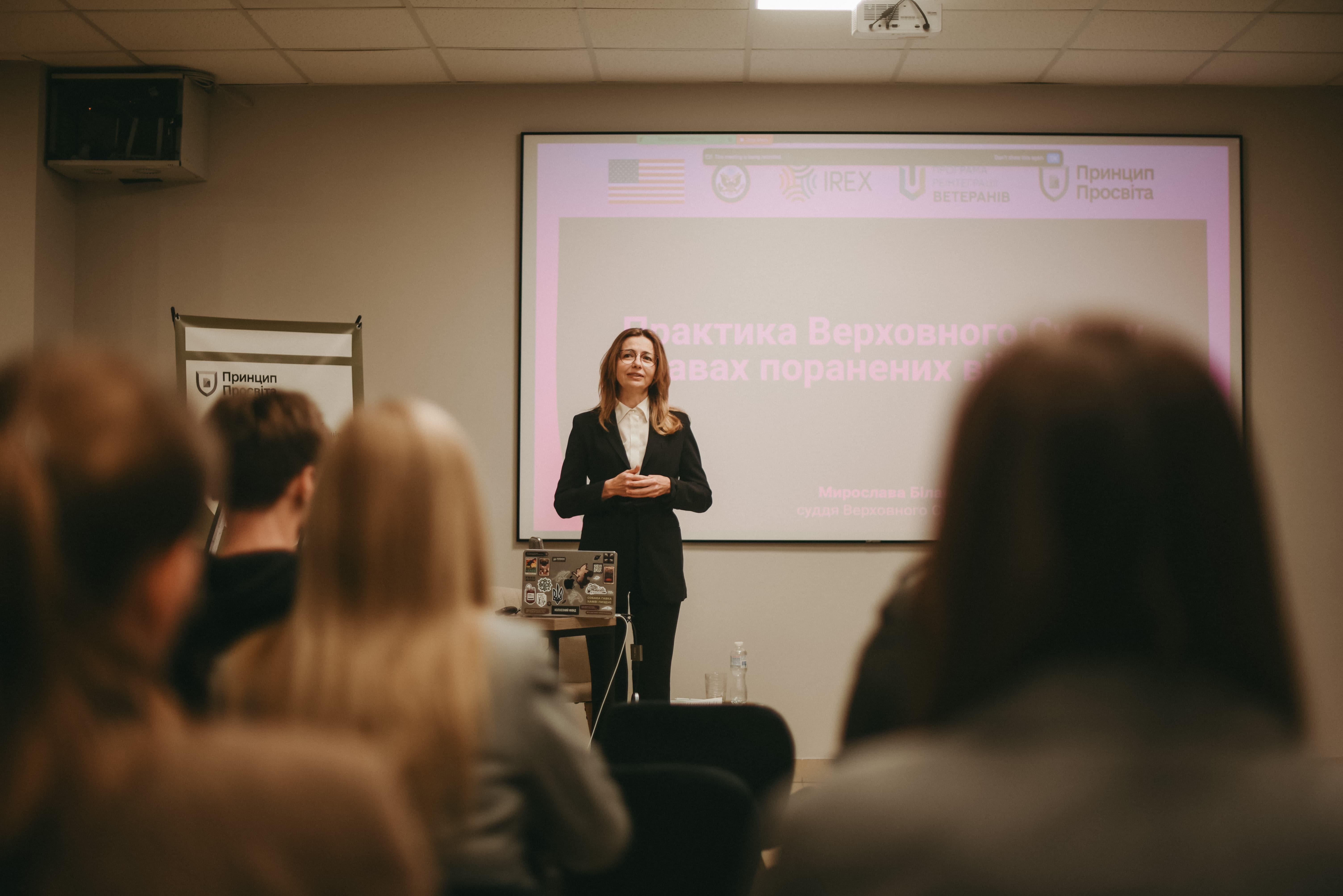 Суддя Верховного Суду у Касаційному адміністративному суді Мирослава Білак виступила з лекцією «Практика Верховного Суду у справах поранених військових» для юристів-волонтерів спільноти Pro bono Громадської організації «Правозахисний центр для військовослужбовців “Принцип”».