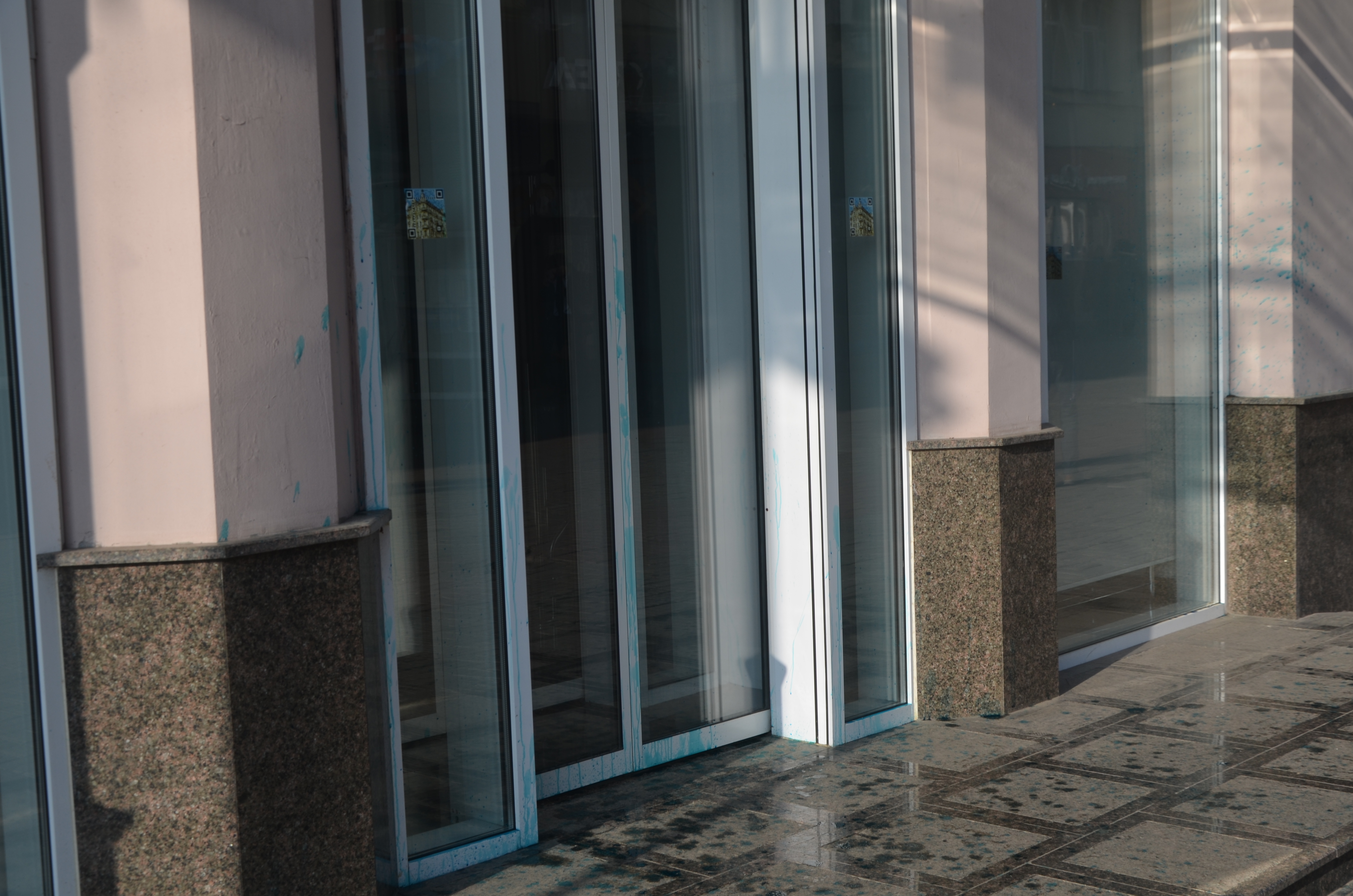 Внаслідок цього було пошкоджено вхідні двері установи, стіни будівлі та сходи.